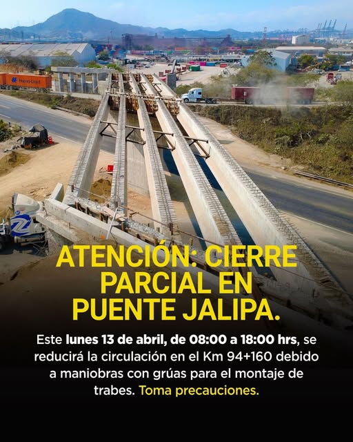 La circulación permanecerá suspendida durante este sábado 18, domingo 19 y lunes 20 de abril, en de 12:00 de la noche a 5:00 de la mañana, para realizar las labores de ampliación de carriles y mejorar la infraestructura carretera en el Corredor Logístico Colima-Manzanillo.