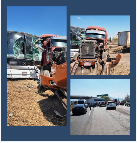 La mañana de este viernes se registró un accidente de un camión de pasajeros que chocó contra un tráiler sobre la autopista Manzanillo-Colima, a la altura de la colonia Bayardo en el municipio de Tecomán, en el entronque de la zona.