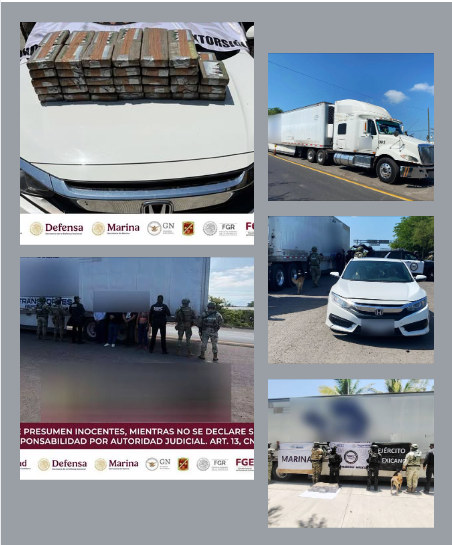 Tras detectar la carga con apoyo de un binomio canino y constatar que se trataba de droga con las características de cocaína, las autoridades procedieron al aseguramiento de los vehículos y la detención de las personas involucradas, para ponerlas a disposición de la autoridad ministerial que corresponde, a fin de deslindar responsabilidades, iniciar el proceso que la ley establece y continuar las investigaciones del caso.